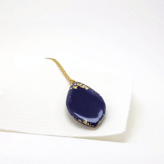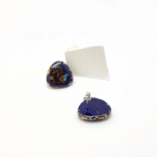Dreieck M, Ohrstecker marineblau mit 23,6 Karat Blattgold und echter Rostpatina