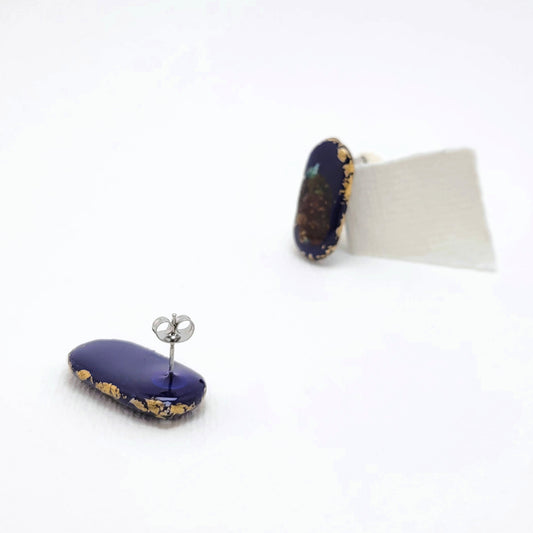 Squoval, Ohrstecker Marineblau mit 23,6 Karat Blattgold und echter Rostpatina