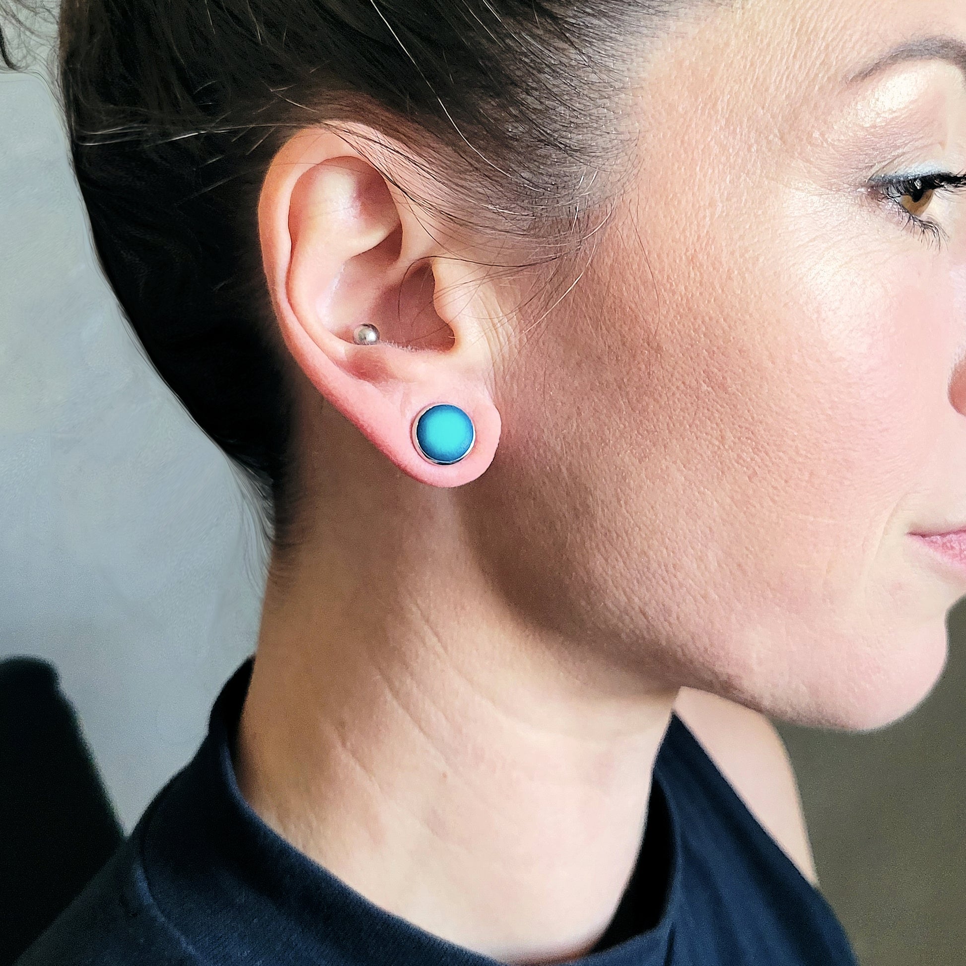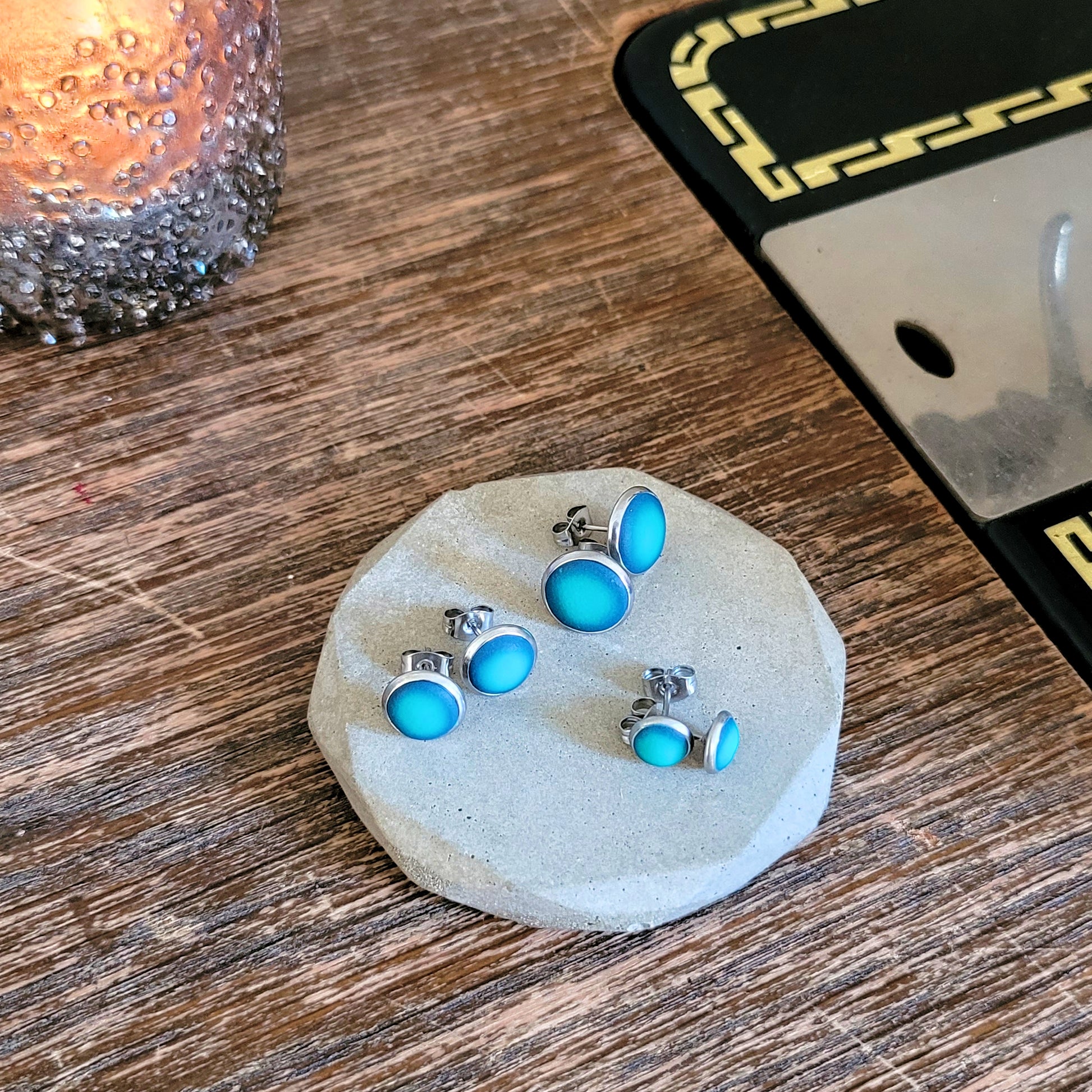 Diese Cabochon-Ohrstecker aus verträglichem Edelstahl sind mit einem türkisem