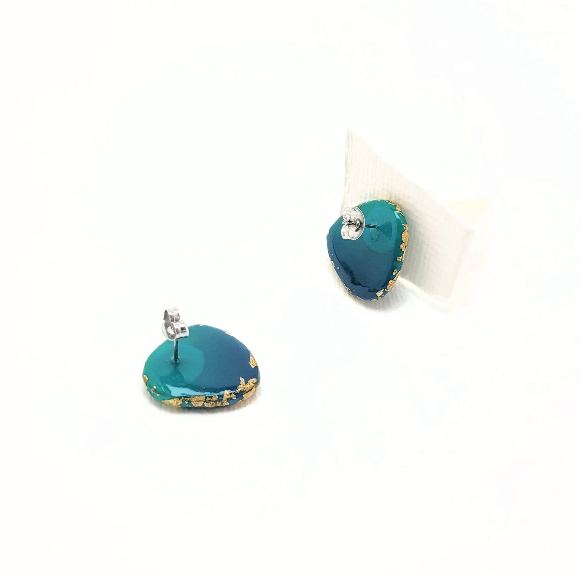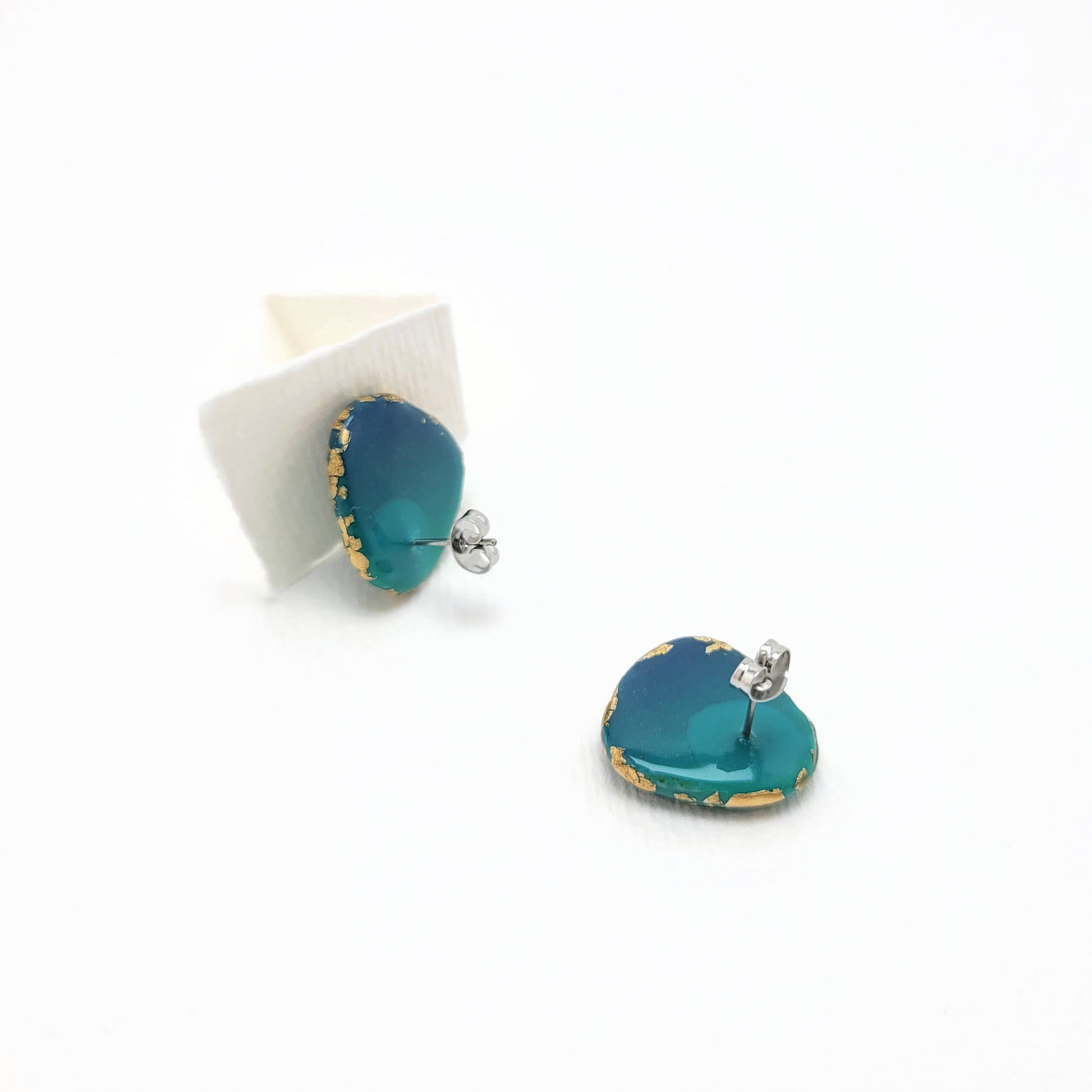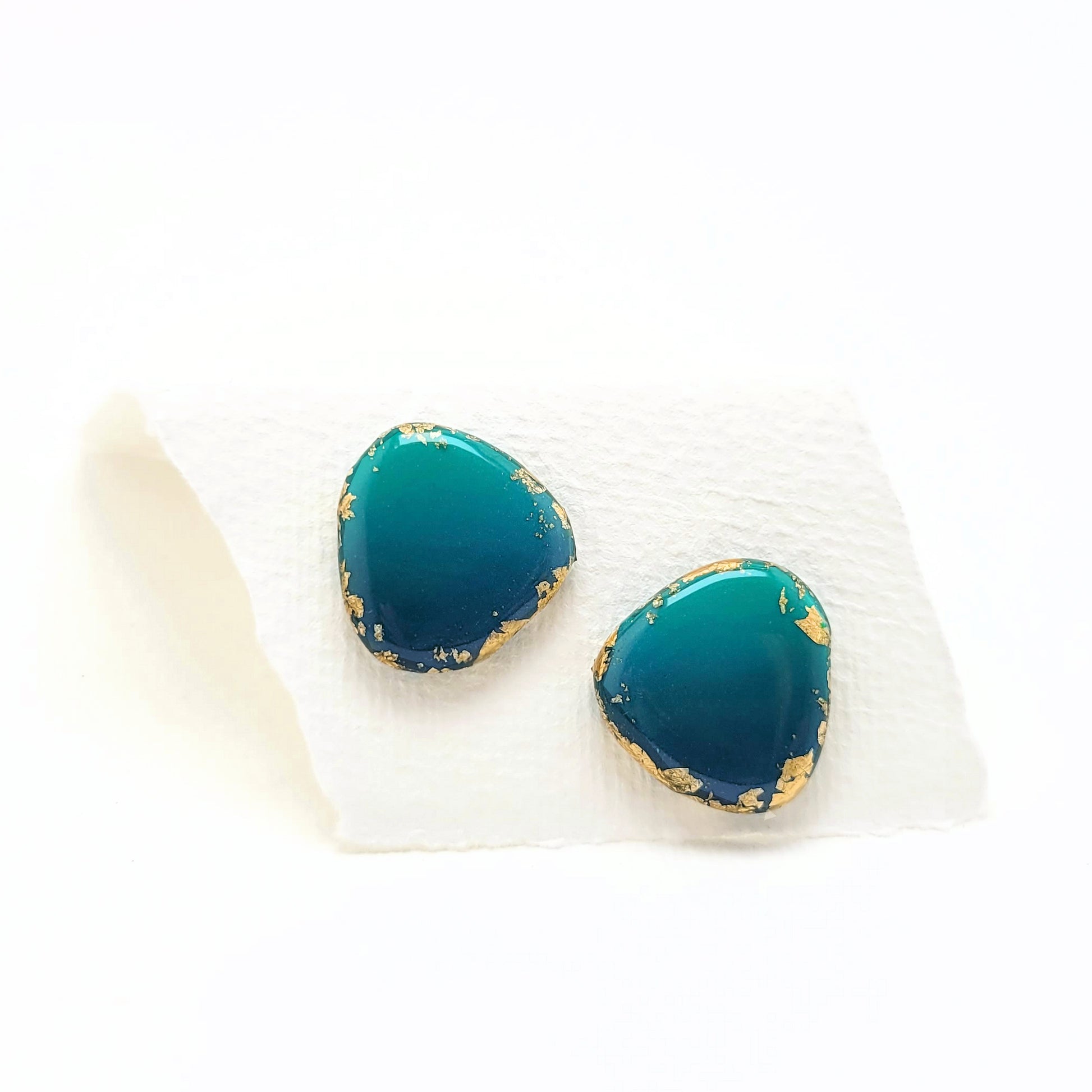 Dreieck M, Ohrstecker mit Farbverlauf Lagunefarben und 23 Karat Blattgold
