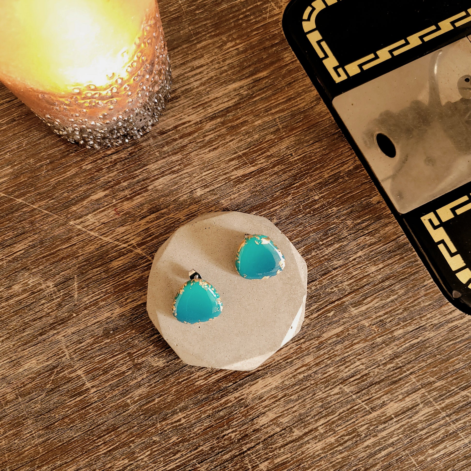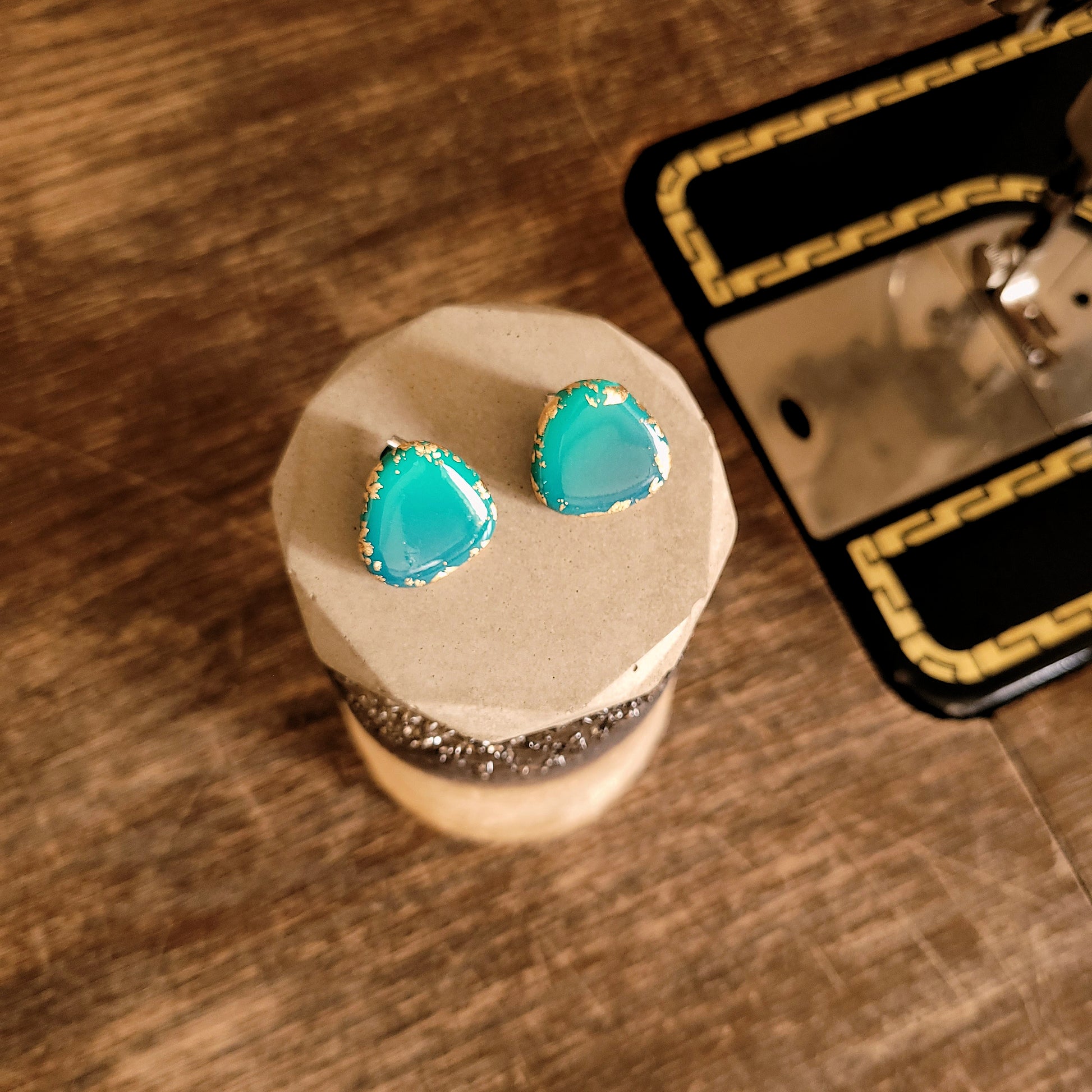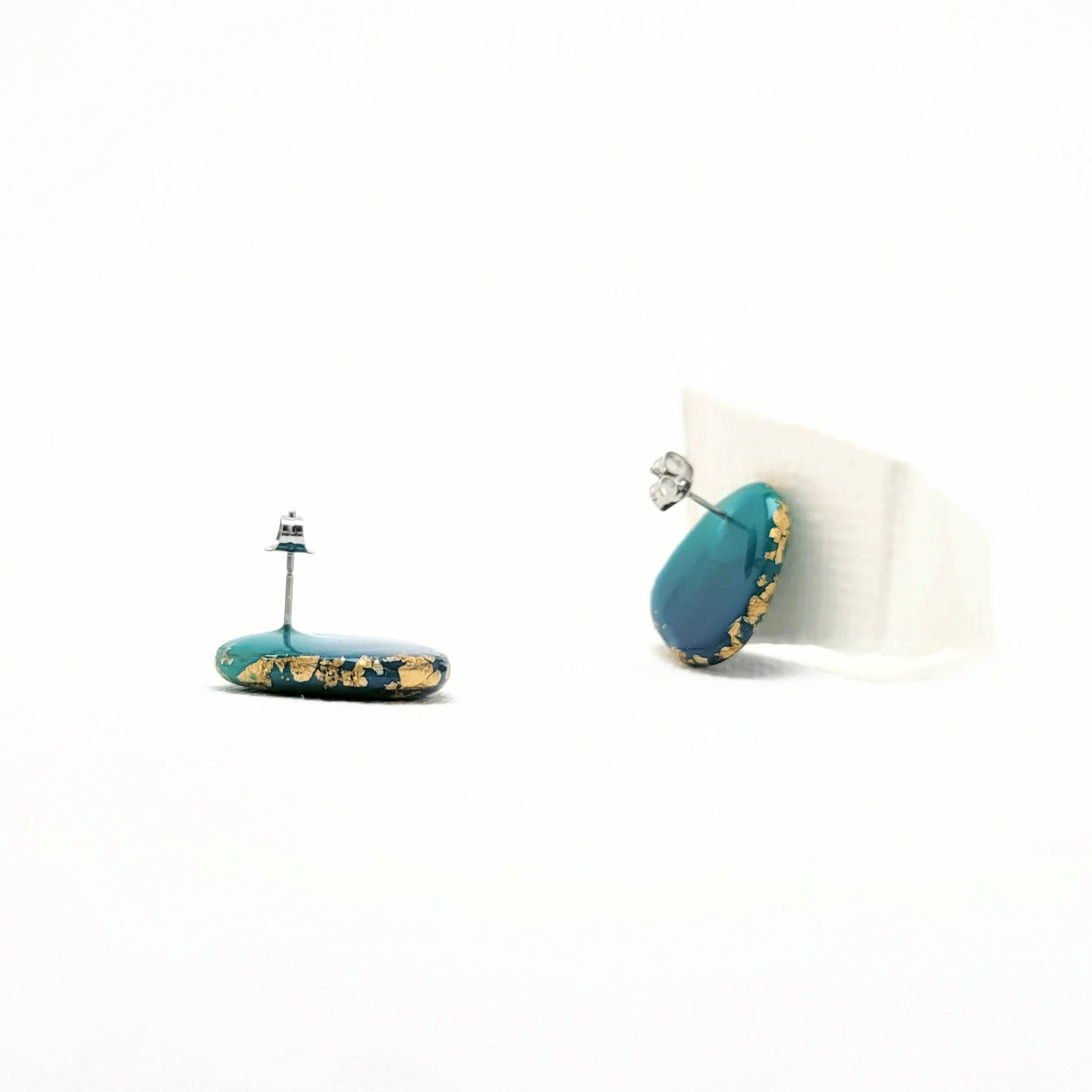 Dreieck M, Ohrstecker mit Farbverlauf Lagunefarben und 23 Karat Blattgold