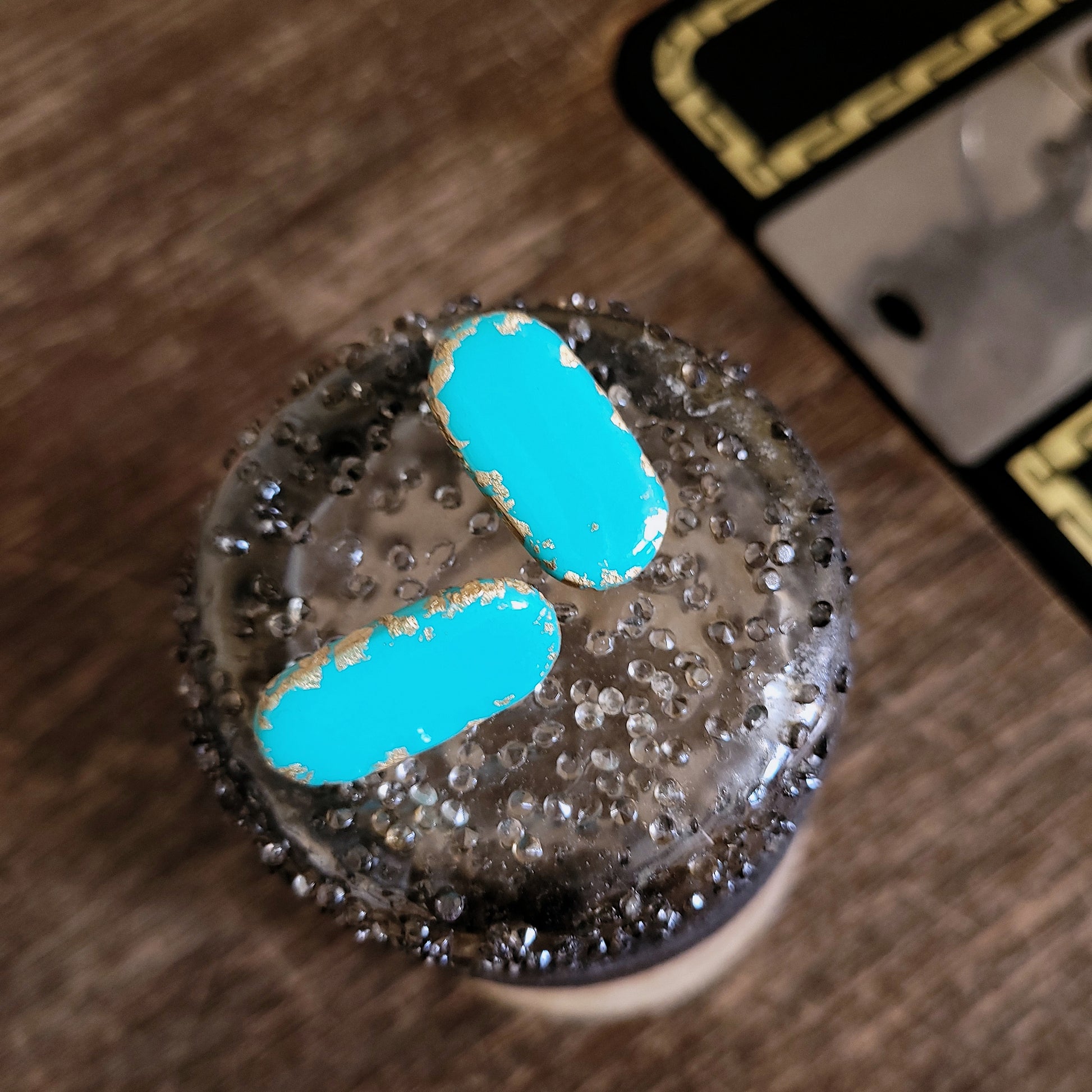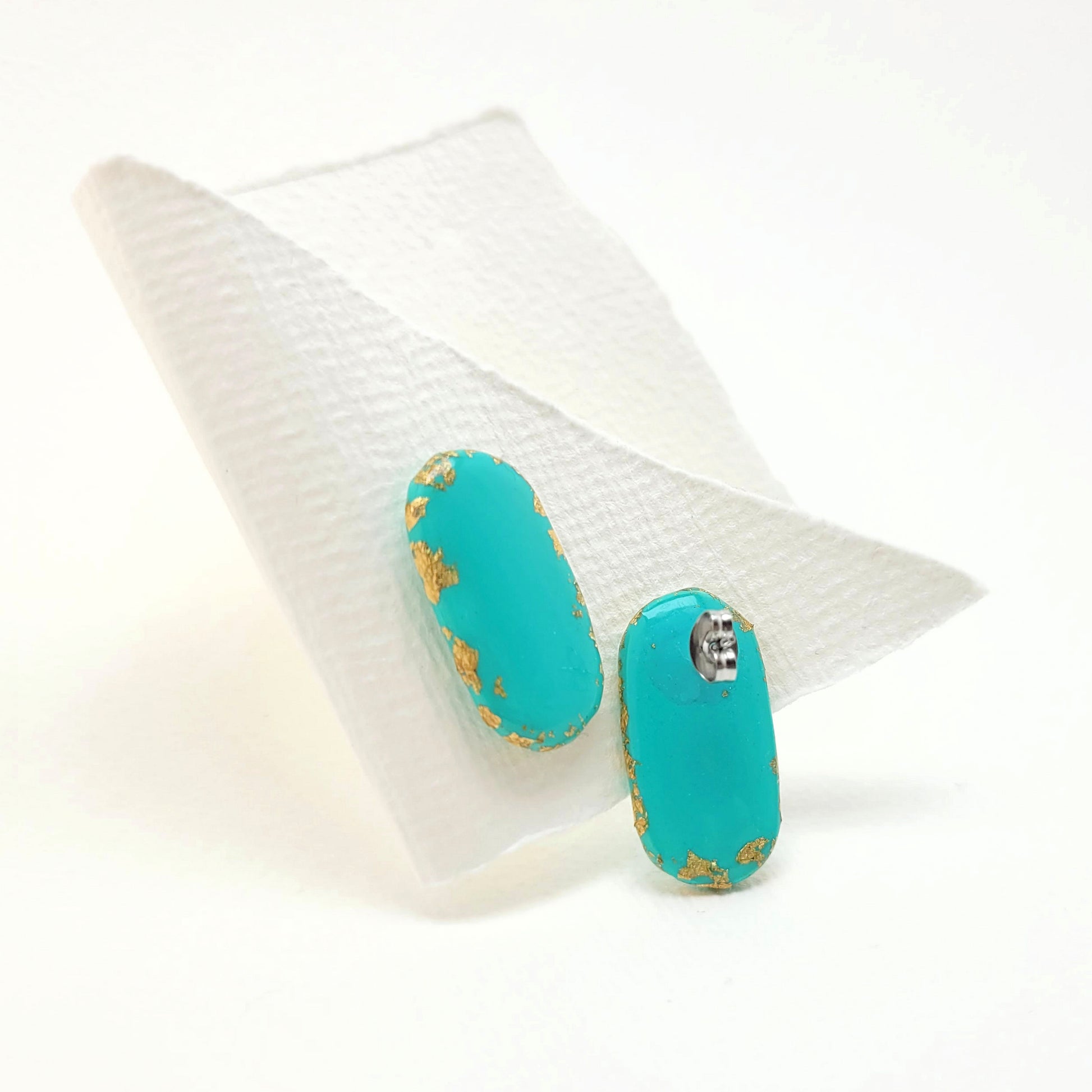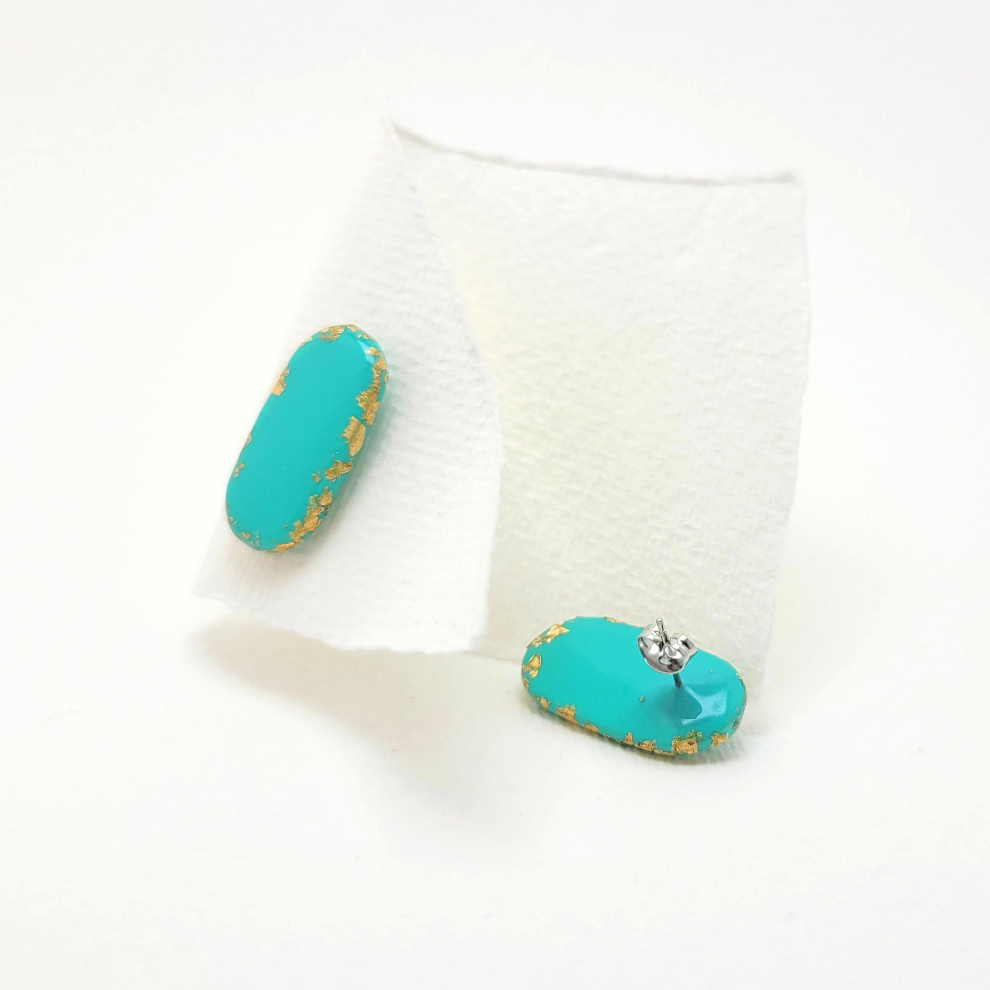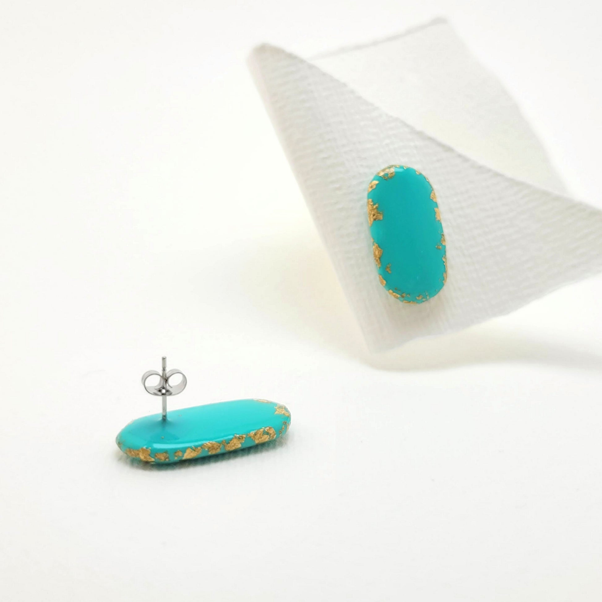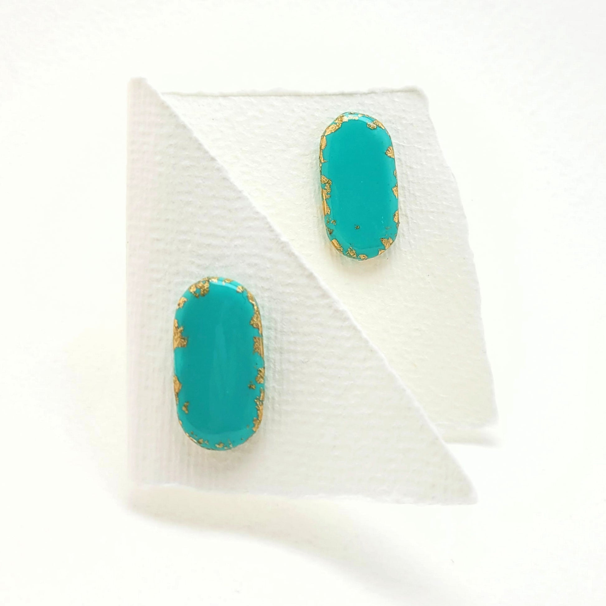 Squoval, Ohrstecker Türkis mit 23,6 Karat Blattgold