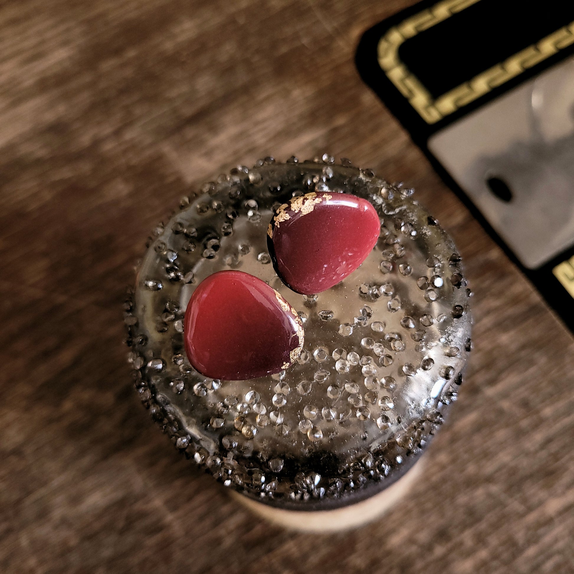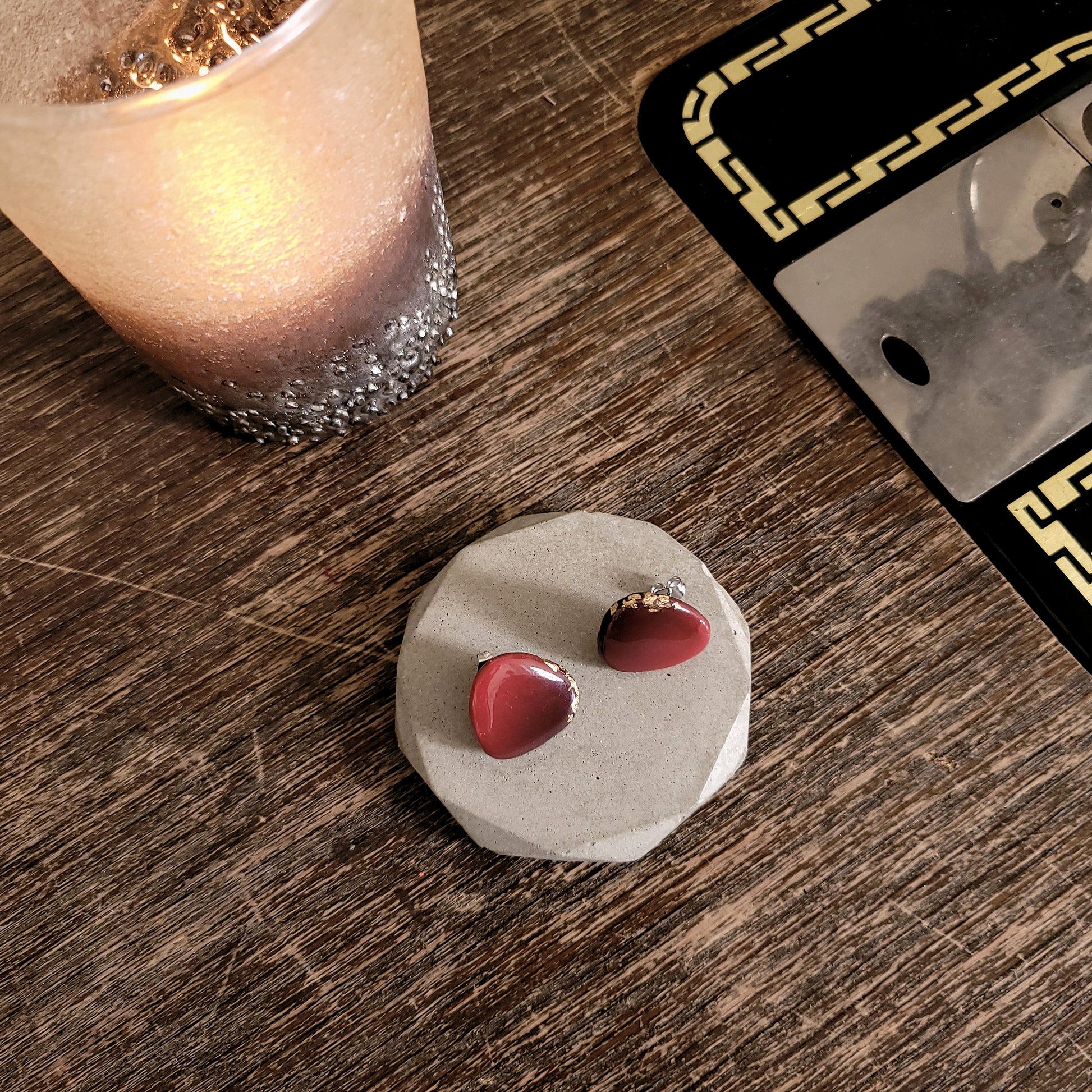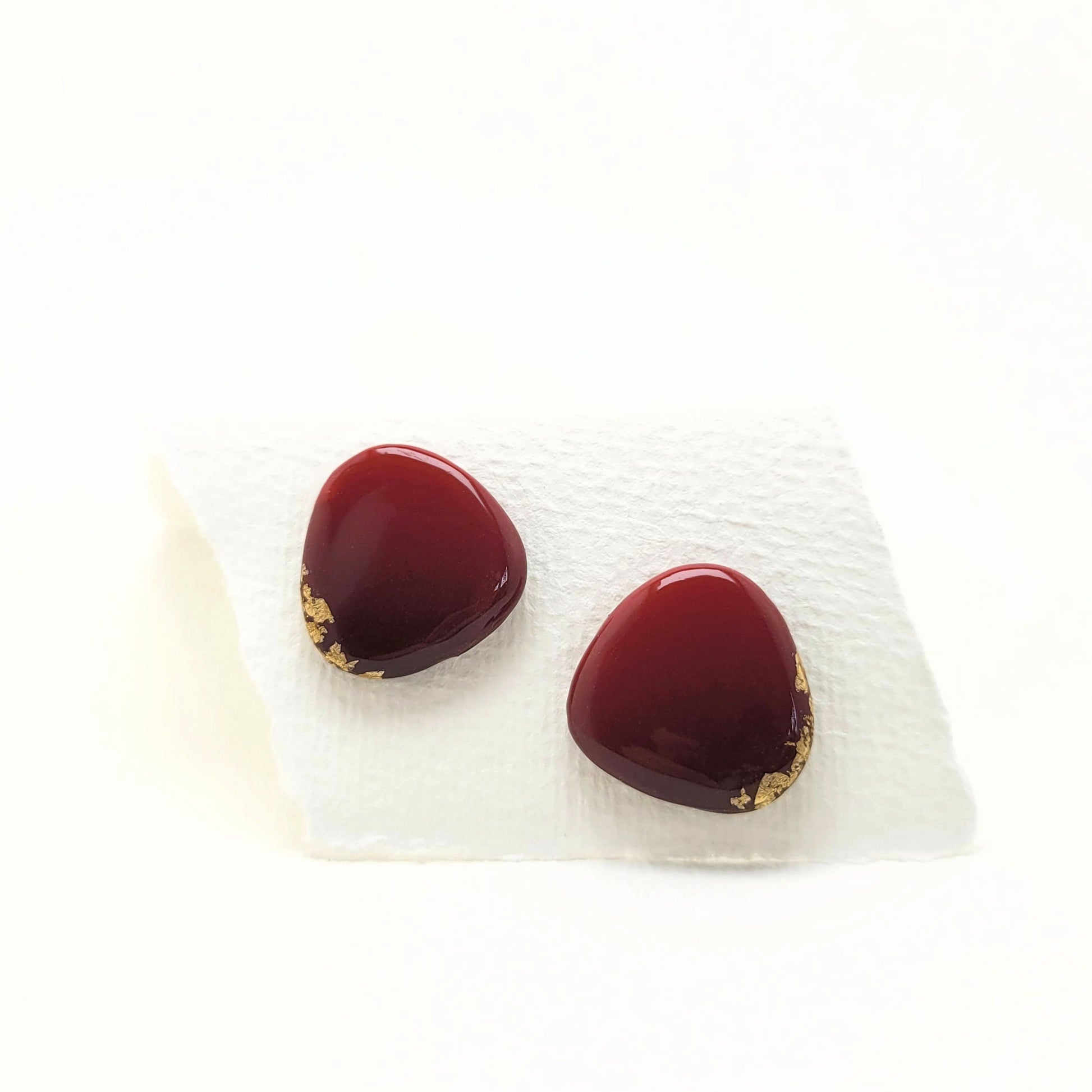 Dreieck M, Rote Ohrstecker mit 23,6 Karat Blattgold