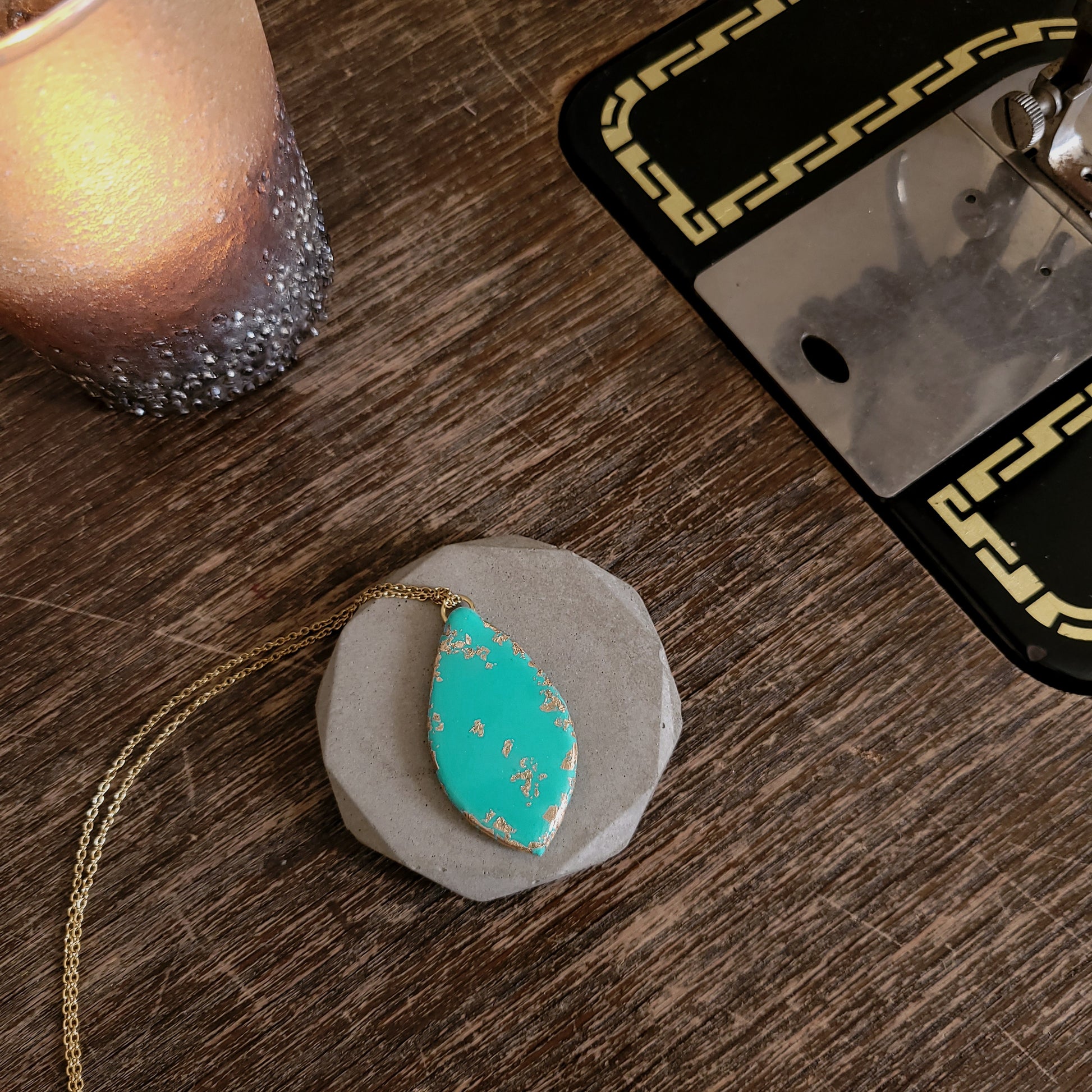 Türkiser Anhänger an goldener Halskette